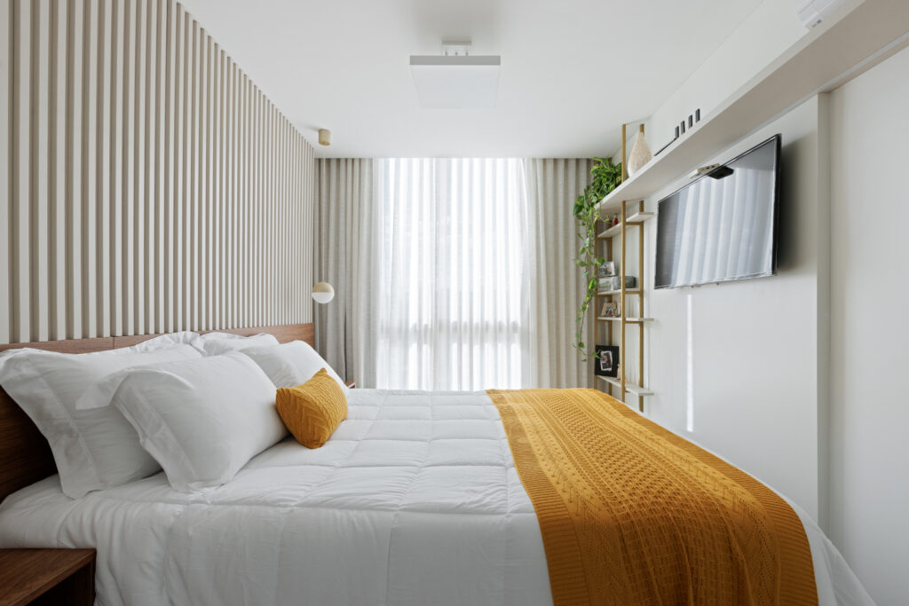 O apartamento NW602, localizado no Noroeste tem em Média 90m² de área, Um apartamento entregue em 2023 e que teve seu projeto feito antes da entrega das chaves. O apartamento é para um casal sem filhos, possui 2 quartos, sendo um deles a suíte do casal com closet e o outro, o quarto de hóspede e escritório para Home Office.